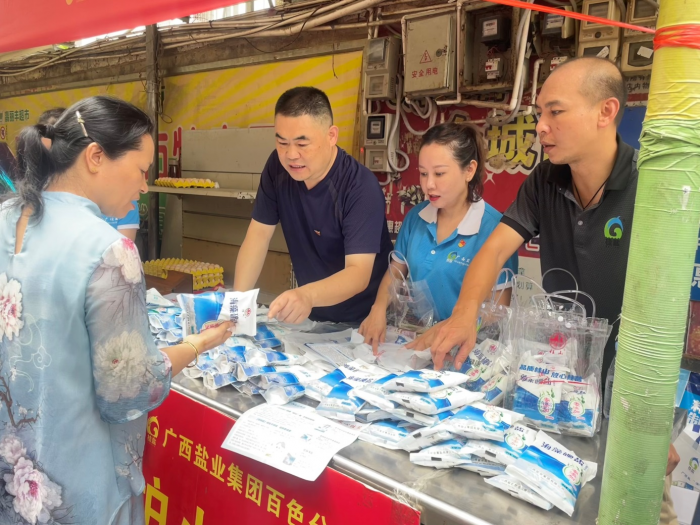 百色市开展党建业务融合提升实践活动广西盐业集团有限公司百色分公司党支部以“党建引领促发展,融合经营谱新篇”为主题,走进百色市东风菜市场常态化开展党建业务融合提升实践活动。